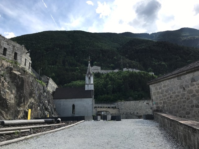 Da anni passo a fianco di Fortezza, e dall’autostrada vedo il grosso complesso grigio che un po’ mi ricorda del forte di Bard. Così finalmente , con la convinzione errata di trovar traffico sull’A22 ( il traffico c’era ma in A 4), mi sono fatta un po’ di statale e mi sono fermata a Fortezza – Festung, mirabile esempio di nonsense topografico, la fortezza di Fortezza, e anche in tedesco rimane. E ho scoperto la fortezza Bastiani. Il complesso è stato iniziato con l’idea che Napoleone potesse invadere l’Austria passando dal Brennero, evidentemente dimenticando come aveva facilmente aggirato sia Bard sia i forti sabaudi, e fu inaugurato sotto Ferdinando, predecessore del mai abbastanza rimpianto in Austria e zone limitrofe, Franz Josef. Già allora era obsoleto. È costruito in granito e a metà Ottocento con l’invenzione dei proiettili esplosivi, i forti in caverna privi di cemento armato divennero indifendibili. A Fortezza non fu sparato mai un solo colpo di cannone. Retrovia delle retrovie, durante Prima Guerra Mondiale fu usata come deposito mentre la carneficina si svolgeva altrove. Durante la Seconda guerra Mondiale anche, se pur per breve periodo comando tedesco.