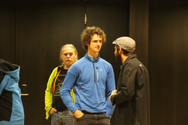 Divertente il pragmatismo tutto bergamasco dell’avere un piano B ( se fallisci, per quando sarai vecchio, perché un giorno o l’altro e lo dice come un dato di fatto su cui ha già riflettuto, bisognerà smettere) e la cassetta degli attrezzi per il piano A, diventare il nuovo Messner, le lingue, la laurea, gli sponsor ( ed è lì che incontra la Zanatta, che è nel marketing di North Face e adesso da molti anni gli fa da manager e alter ego, o meglio, fa da manager all’ego non proprio piccolo del suo cliente che è noto per essere abbastanza polemico verso l’ambiente. ) Il giornalista Filippini è la giusta spalla per lasciar trascorrere un pomeriggio piacevole, tra aneddoti e perle di saggezza. Che Moro sia un uomo felice è evidente, e la sua felicità è contagiosa… le sue abilità di conferenziere, per così dire hanno bisogno ancora di qualche messa a punto:nonostante tutto, l’uomo non è così disinvolto come vuol far credere al suo pubblico, quando manca il filtro di una telecamera.